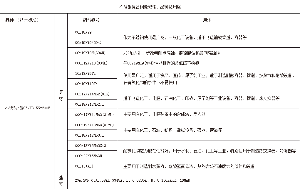 常用复层材质:304,321,316L,904L,254SMo,1Cr13